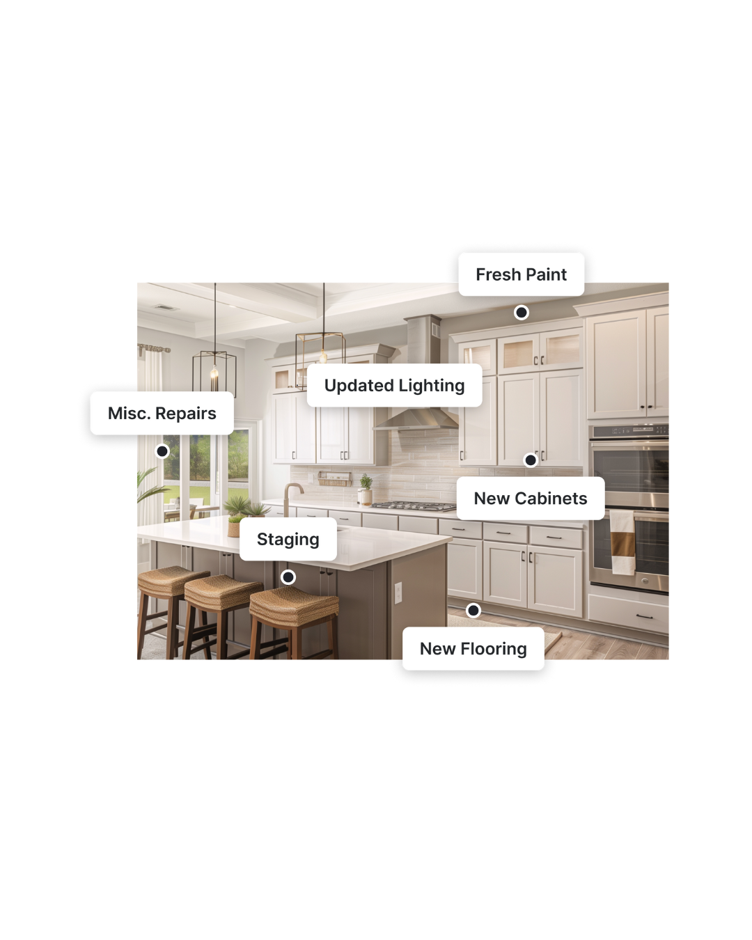 Ideal for staging, paint, flooring, landscaping, lighting, and curb-appeal updates