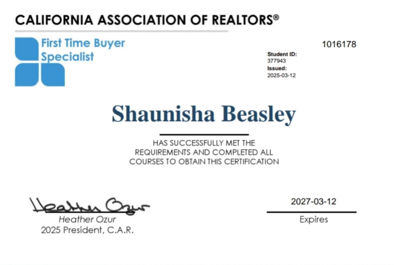 I am Shaunisha Beasley, REALTOR® with JPAR Iron Horse Real Estate. Born and raised on the Peninsula, I am a Bay Area native and I have always had a love for Real Estate and a passion for helping others! Having spent all my life living here has made me deeply familiar with the local markets and neighborhoods, ensuring that I can help you find not just a house but a home! I serve clients from the bay area to the central valley.